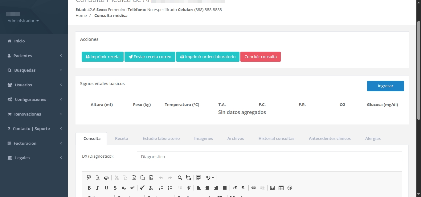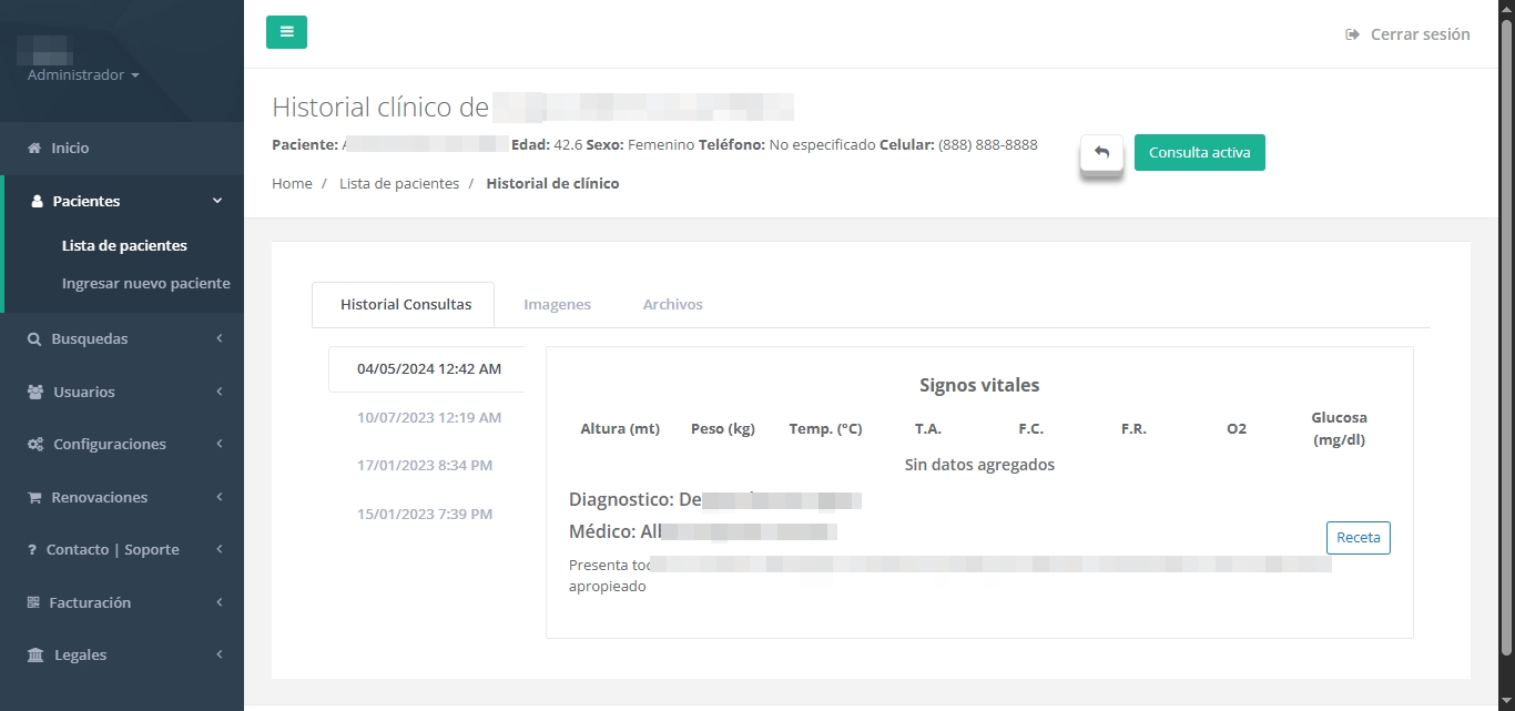 Un sistema desarrollado para los médicos, llevando el control total de sus consultas, historial médico, signos vitales, padecimientos crónicos y mucho más.